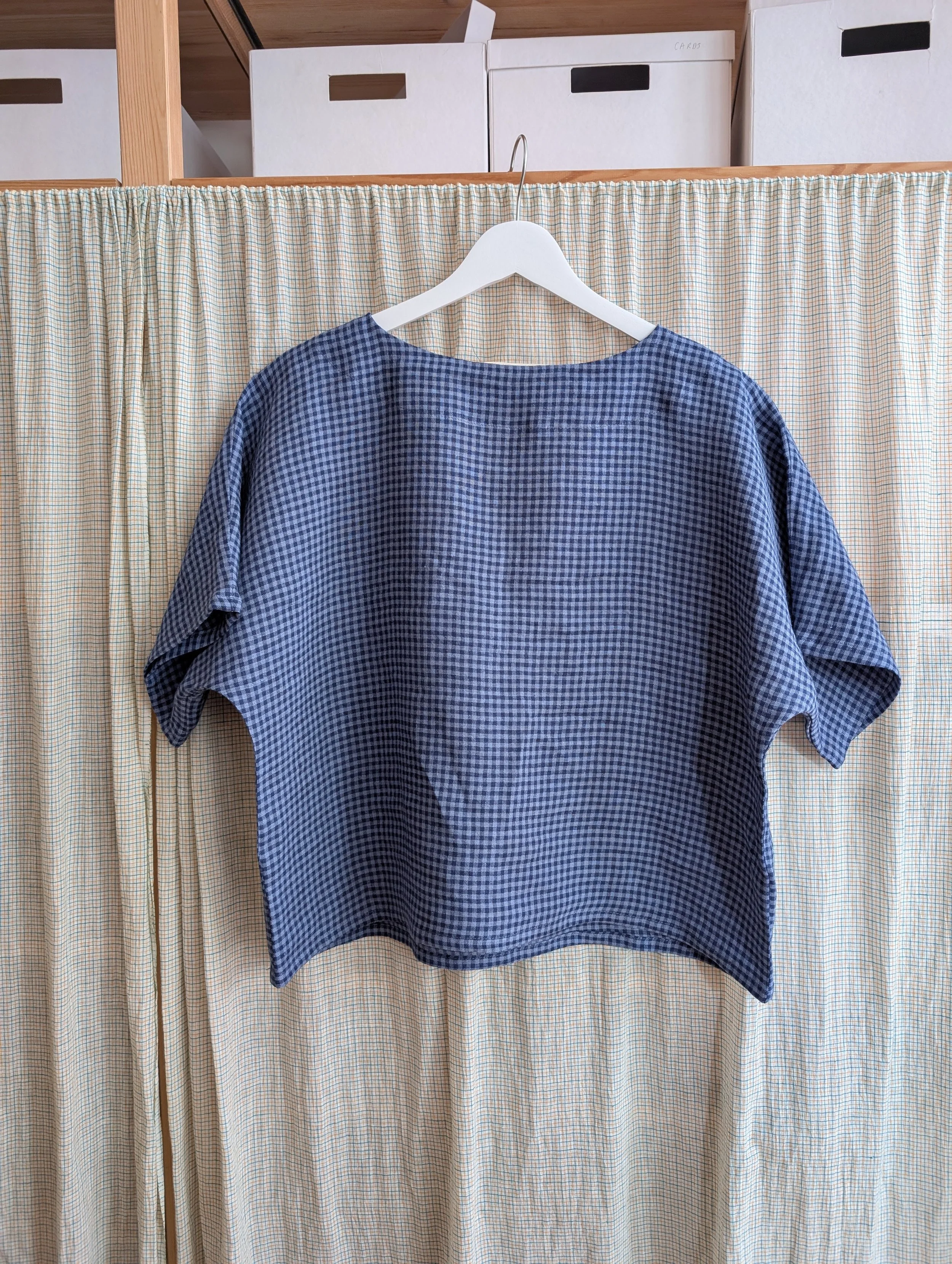 Elsie Tee (Short Sleeve) - Blue Check Linen - All sizes - ZERO WASTE